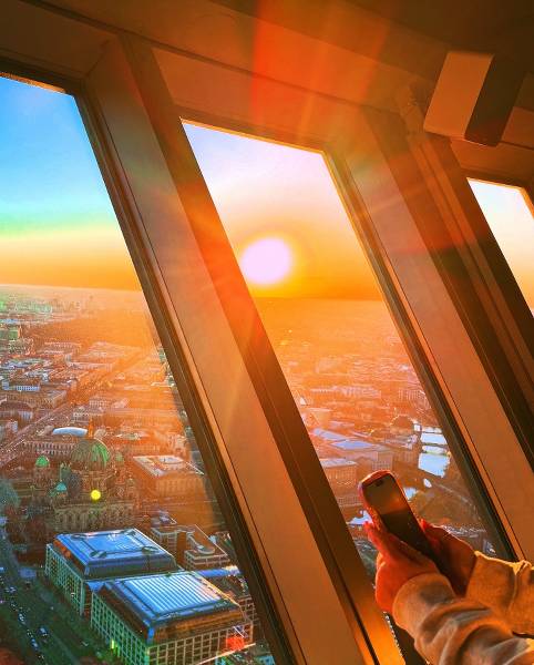 The tower remains open late to allow visitors to enjoy both the daytime views and the illuminated Berlin skyline after dark.