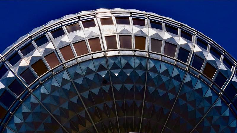The two high-speed elevators transport visitors up to the sphere in a swift 40 seconds.